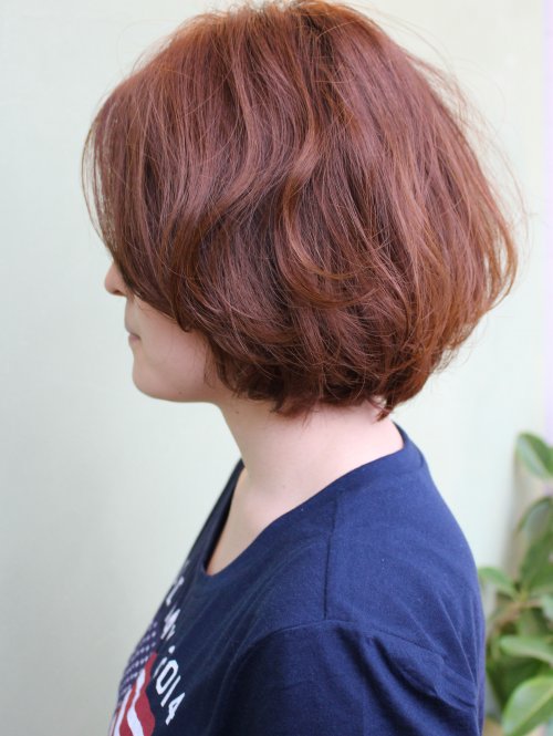仕上げで毛先アイロンでワンカール☆こういうパーマもできますよ☆顎ラインのナチュラルボブ♪