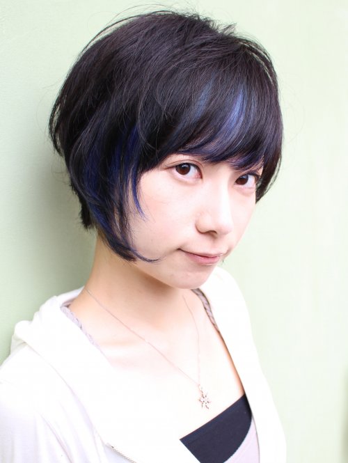 右フロントからサイドにかけて一線ブリーチをして上からブルーのマニキュアをON☆ 前髪を目ぎりぎりでつくり、前回のクールショートよりもかわいさをプラス☆