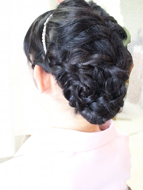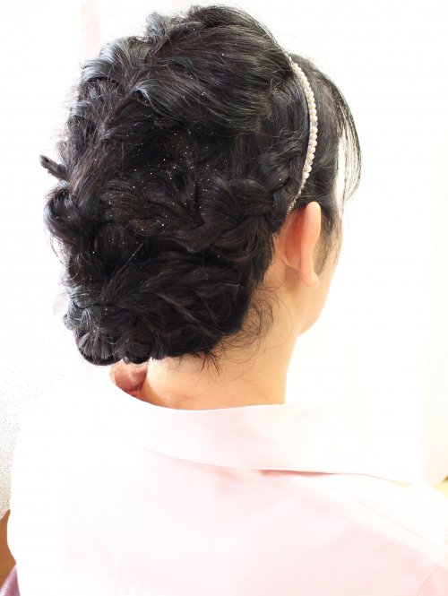 ロングの方でも編み込み込みするとコンパクトな上品なアップスタイルに☆